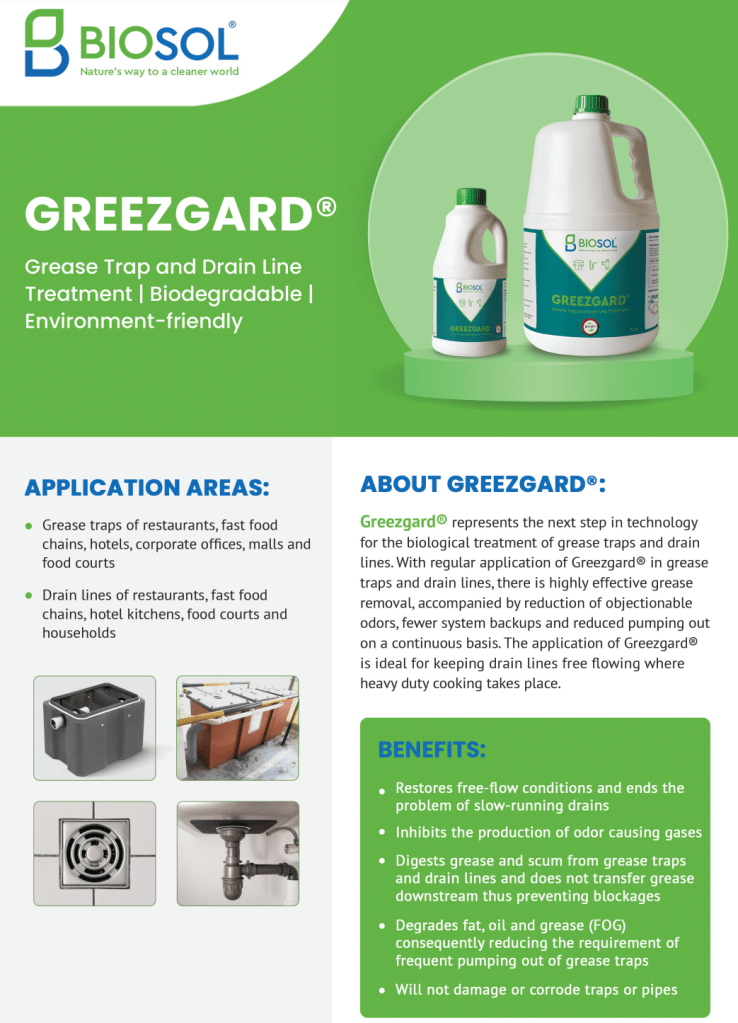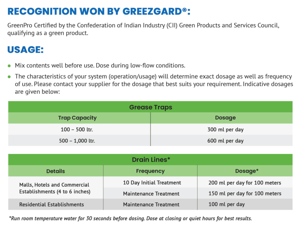 - Breaks down grease and fatty waste in the cafeteria,